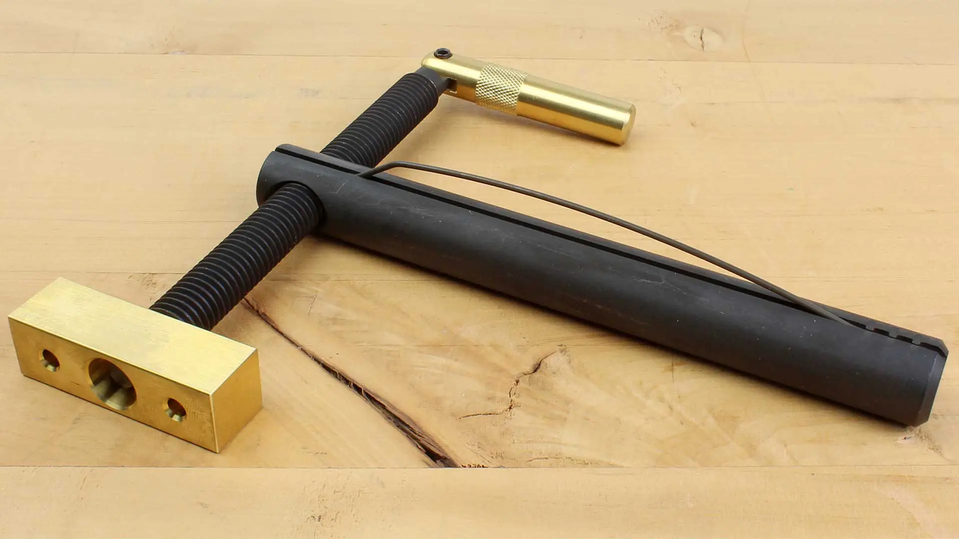 Ces éléments de serrage peuvent être utilisés partout où il est possible de percer un trou de 19 mm. Grâce au levier pivotant, une bonne pression de serrage peut également être exercée dans des endroits difficiles. Le rapport entre la tige filetée et le corps est dévié de 3° par rapport à l'angle droit, de sorte que la pression se crée toujours près du banc de rabotage.
