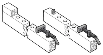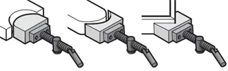 Dans la tête de l'élément de serrage, il y a deux trous qui permettent de visser des cales de différentes formes. Coller des placages sur des bords courbes devient ainsi tout aussi possible que le collage de cadres photo, dont les baguettes sont coupées en onglet.