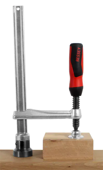 Bessey a maintenant résolu ce problème en séparant la partie de maintien et le corps. Il existe désormais des éléments de serrage dans différentes versions avec un débattement fixe ou variable, avec une poignée à deux composants comme pour les serre-joints ou une poignée à molette et une poignée excentrique. Toutes les variantes s'adaptent aux adaptateurs de banc de travail disponibles séparément, dont il existe 3 différents avec un corps correspondant pour des trous de 19 mm, 20 mm et 30 mm. Si votre banc de travail présente l'un de ces diamètres de trou, vous pouvez utiliser tous les éléments de serrage de cette série. Les éléments de serrage se fixent simplement sur la pièce d'adaptateur et sont sécurisés par une vis hexagonale intérieure.