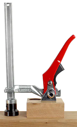 Les éléments de serrage ou les dispositifs de maintien des pièces pour les établis et les bancs de travail souffraient jusqu'à présent du désavantage que le corps était solidement lié à la partie de maintien et donc n'était adapté qu'à une seule taille de trou. Cela a donné lieu à plusieurs systèmes incompatibles. Un établi avait des trous de 3/4 pouce, un autre des trous de 20 mm, et il y avait aussi des exotiques avec des trous de 1 pouce et encore quelques autres.