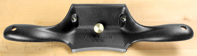 Ce rabot à placage est fabriqué en fonte d'acier spécial résistant, capable de supporter une chute sur le sol sans se casser. La lame est maintenue par 2 vis, la vis centrale sert à courber légèrement la lame, ce qui vous permet d'éviter que les bords tranchants laissent des rayures dans le bois.